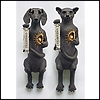H/B/T= 37/12/13,5 cm und 38/12/13 cm, gebrannter Ton, Ölfarbe, teilw. 24kt blattvergoldet