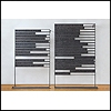 2014, InstallationH/B/T = 220/136/41 cm und 240/157/41 cm, schwarze durchschossene Tonfliesen, 2 Metallrahmen, 2 Projektilwannen, LED-Lichtleisten, 2 Trafos