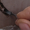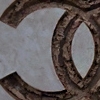 2018, Wall sculptureH/W/D = 35,5/31/4 cm; Block of fired manganese clay coated with aluminium, oil paint