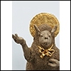 H/W/D = 19/12/15 cm, fired clay, partly plated with 24ct gold leaf