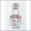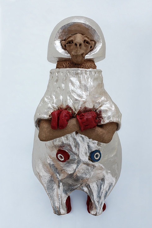H/W/D = 22/8/12 cm, fired clay, oil paint, partly plated with silver leaf