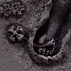 H/W/D = 32,5/36,5/4 cm, fired manganese clay, steel wool, oil paint