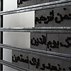 The words of the Lord's Prayer and the sura were shot into the wet clay plates and then treated with nails. The fired clay plates, which twist during firing, do not fit the U profile of the metal framework, and must be ground by machine to fit into the tracks.