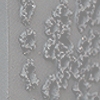 At the base of the clay panels there are two flat iron receptacles. In them are shimmering metal flakes, with an aesthetic appearance as they twinkle and sparkle, creating an illusion of sea waves, glistening under a starry sky.