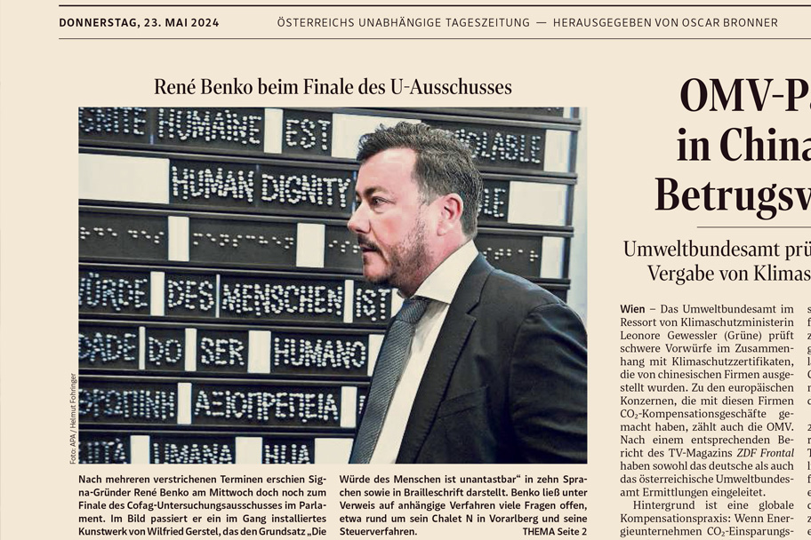 Meine Installation ist im Foyer des Lokal 1 „Erwin Schrödinger“ platziert und steht somit vor dem Eingang des Saals, in welchem parlamentarische Untersuchungsausschüsse stattfinden. Daher ist sie oft in TV-Berichten zu sehen oder auf Fotos in diversen (Tages-)Zeitungen abgebildet.