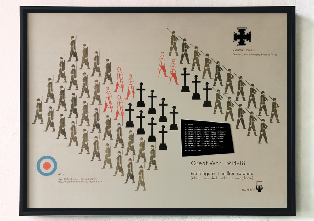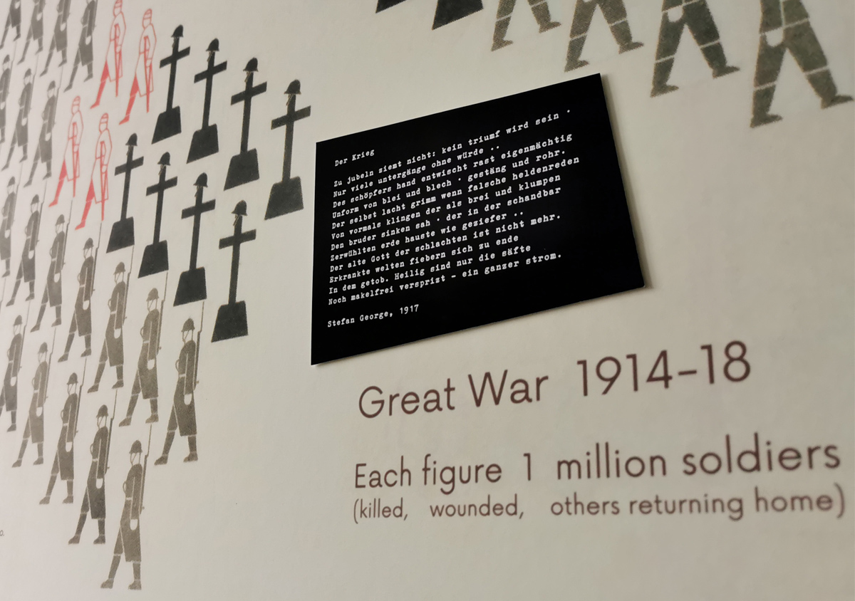Collage unter Verwendung der Bildtafel „Great War 1914-1918 “ und eines Teils des Gedichts „Der Krieg“ von Stefan George aus dem Jahr 1917.