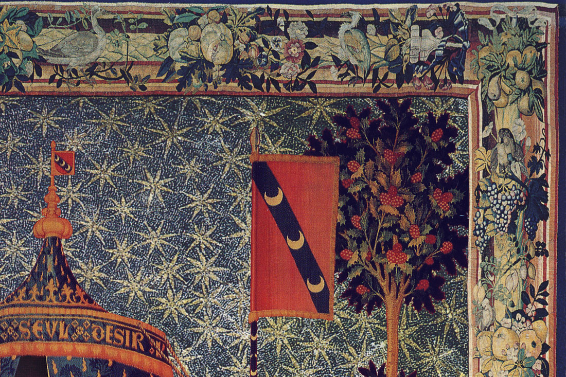 Wir blicken auf einen der berühmtesten und zugleich geheimnisvollsten Wandteppiche der frühen Renaissance: Es ist der letzte aus der sechsteiligen Tapisserie-Serie „Dame mit Einhorn“, Anfang des 16. Jahrhunderts in Flandern gewoben aus Wolle und Seide.