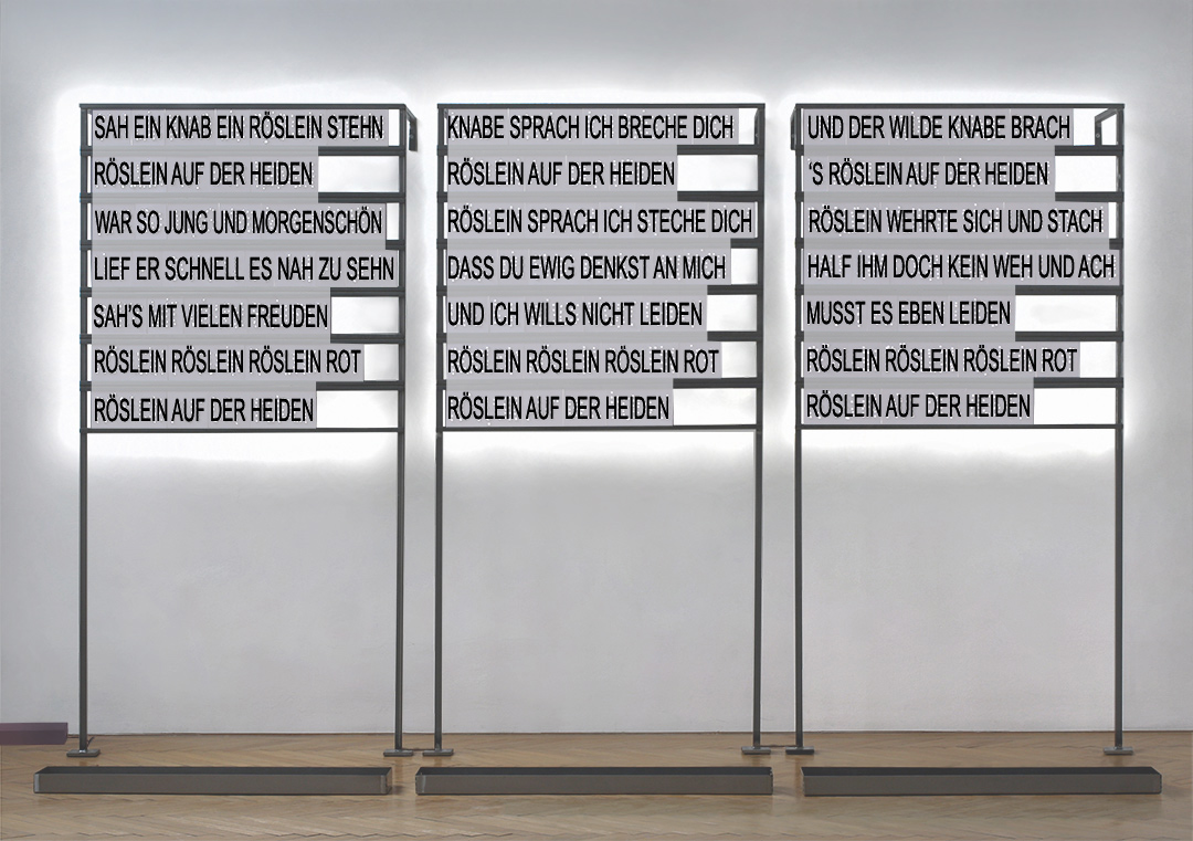 So hat man über Dekaden hinweg Goethes Heidenröslein interpretiert, Franz Schuberts berühmte Vertonung war fester Bestandteil des Liedrepertoires einer Elisabeth Schwarzkopf, eines Hermann Prey.