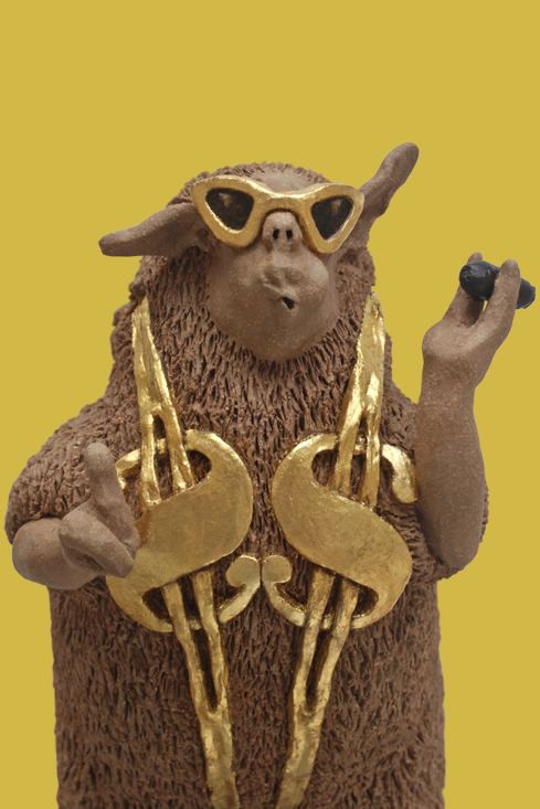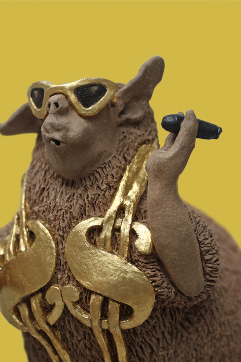Gebrannter Ton, Ölfarbe, teilw. 24 kt. blattgoldet