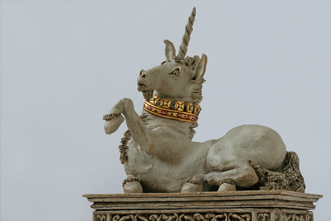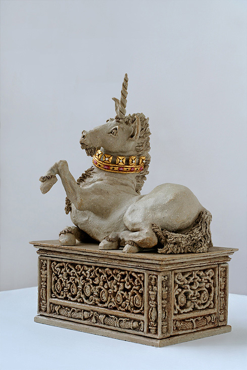 gebrannter Ton, Ölfarbe, teilw. 24kt blattvergoldet